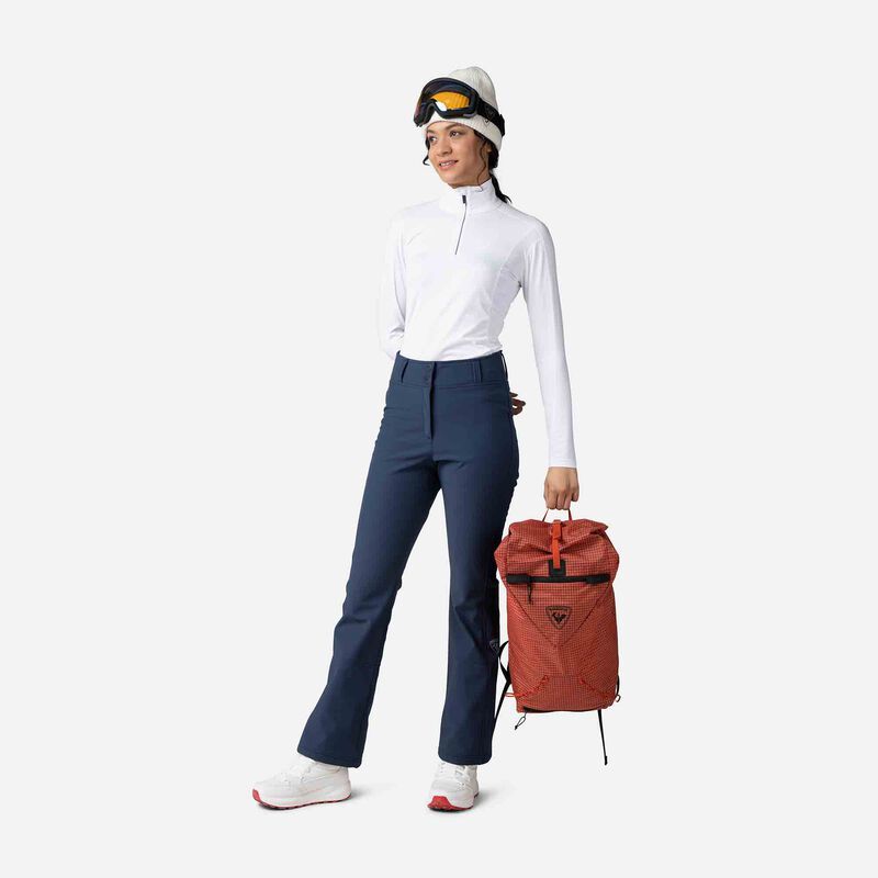 De Rossignol Softshell skibroek voor dames geeft je de vrijheid en het comfort om natuurlijk te bewegen op elk terrein. De slanke pasvorm omhelst je lichaam van heupen tot knieën en gaat vervolgens open om over je laarzen te passen, waardoor een slank, vrouwelijk silhouet ontstaat. Het winddichte weefsel is zeer elastisch en de licht geborstelde fleecevoering biedt warmte als je onderweg bent.
